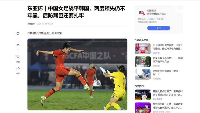 东亚杯|中国女足战平韩国,两度领先仍不牢靠,后防篱笆还要扎牢 齐鲁壹点 2025-07-09 10:33